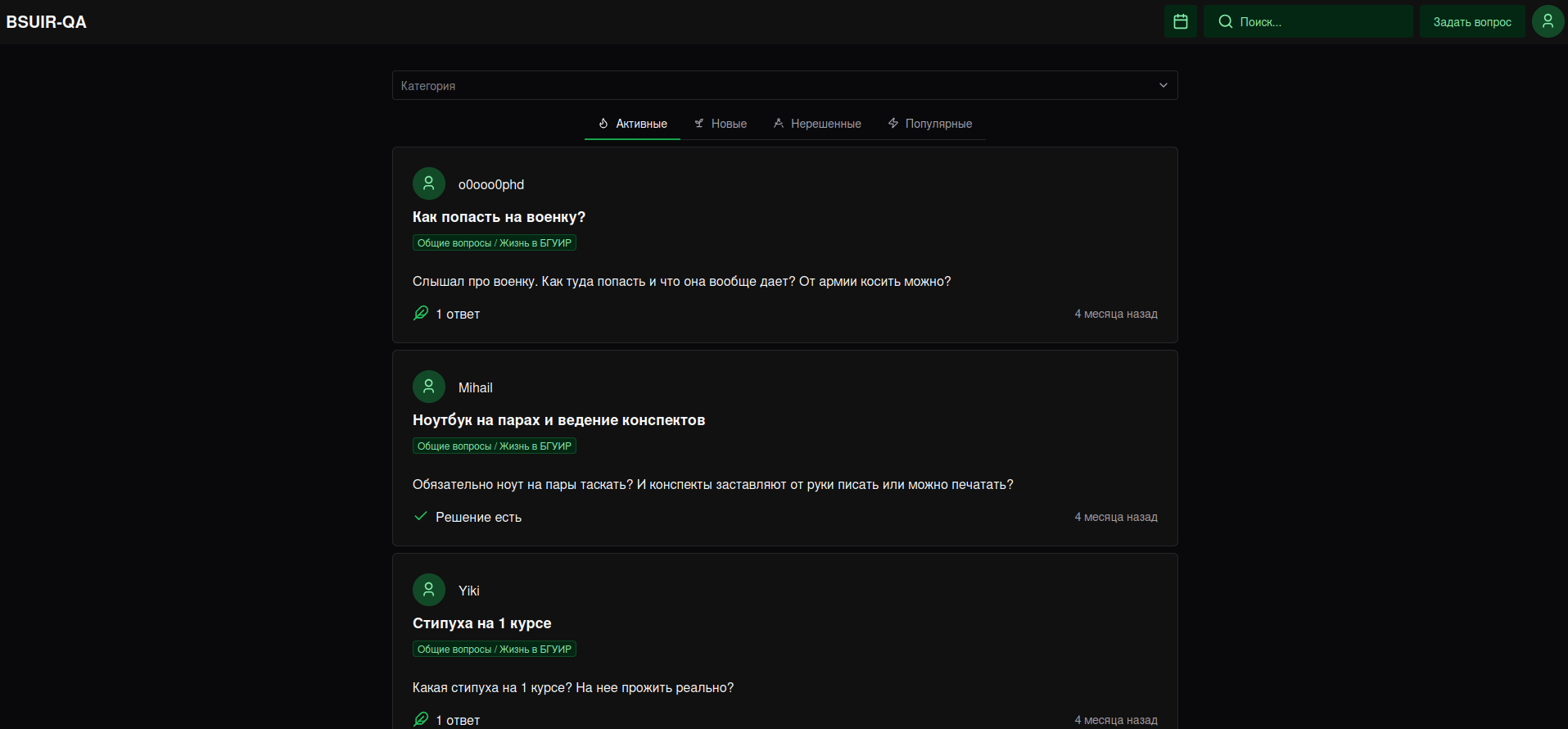 Q&A-сайт для сообщества БГУИР. Помимо основной функциональности, реализована история расписания и его расширенный поиск по различным фильтрам.